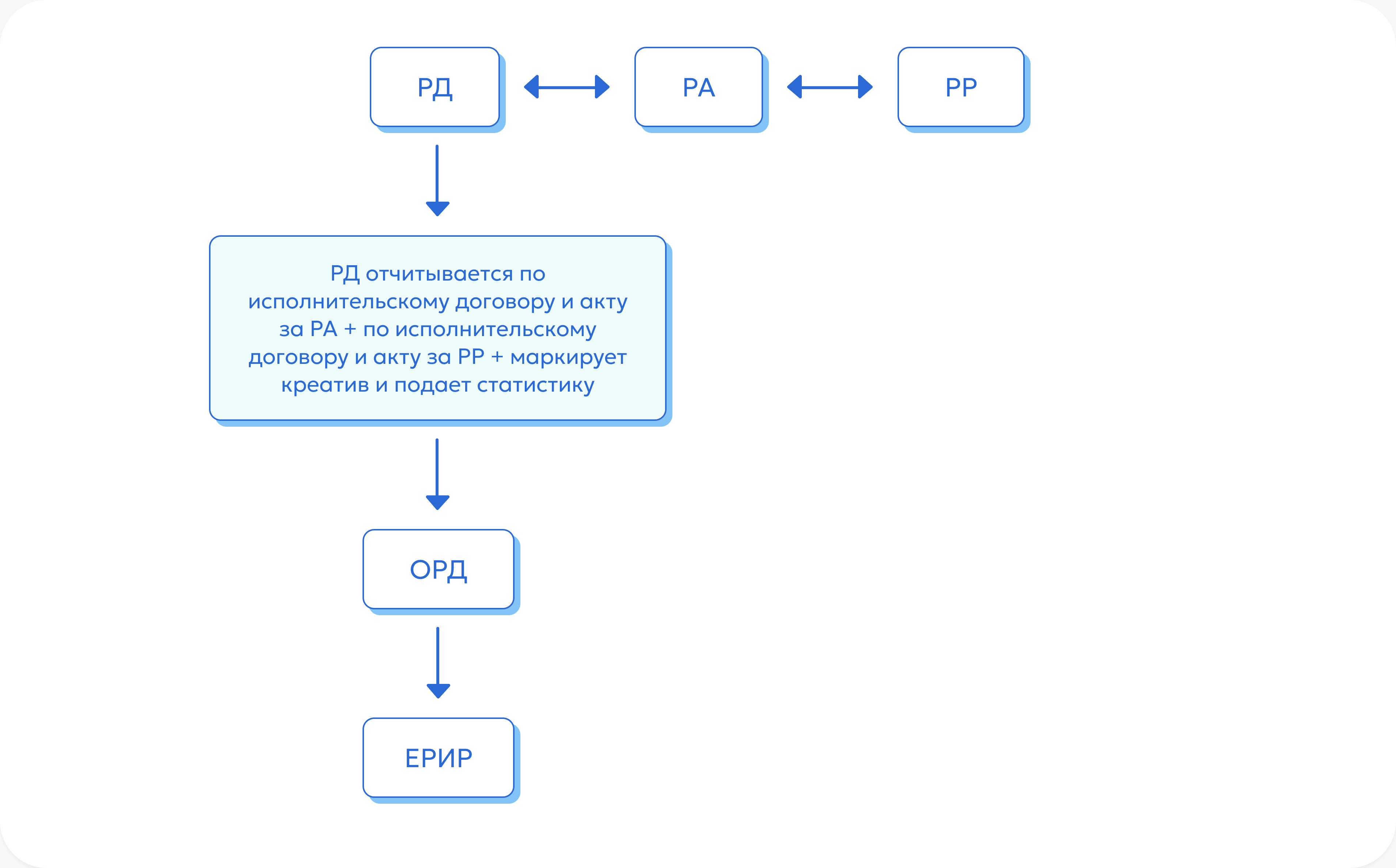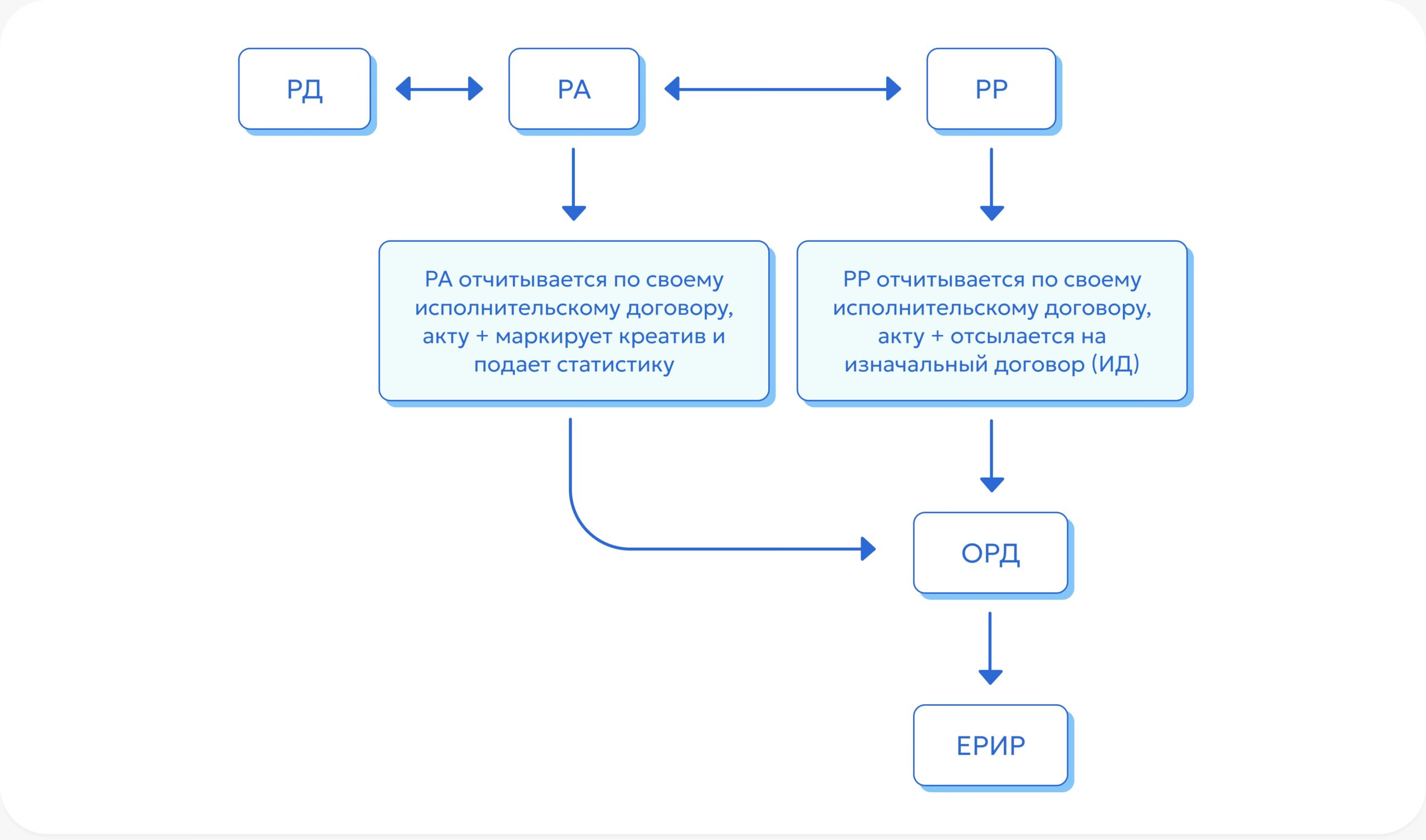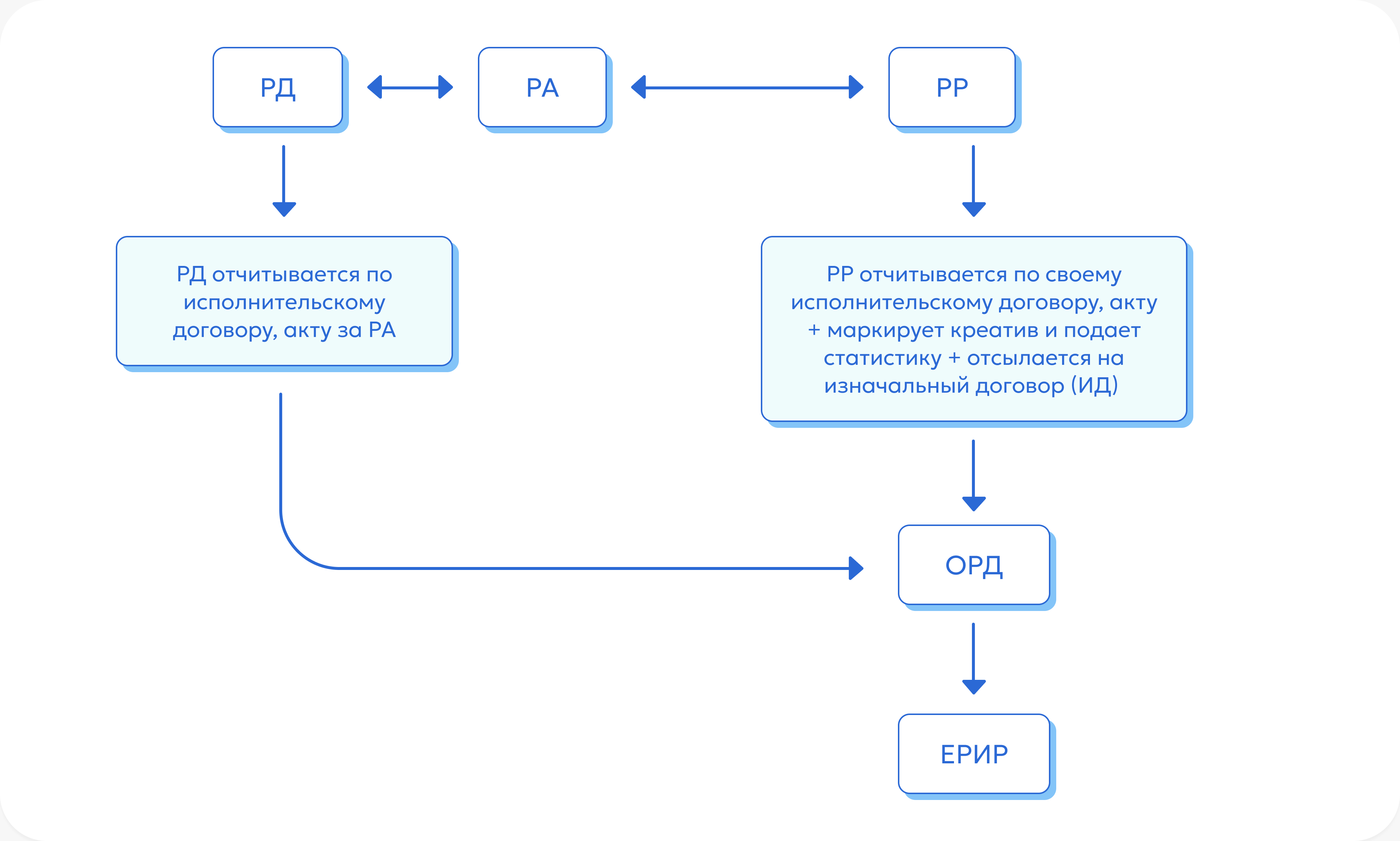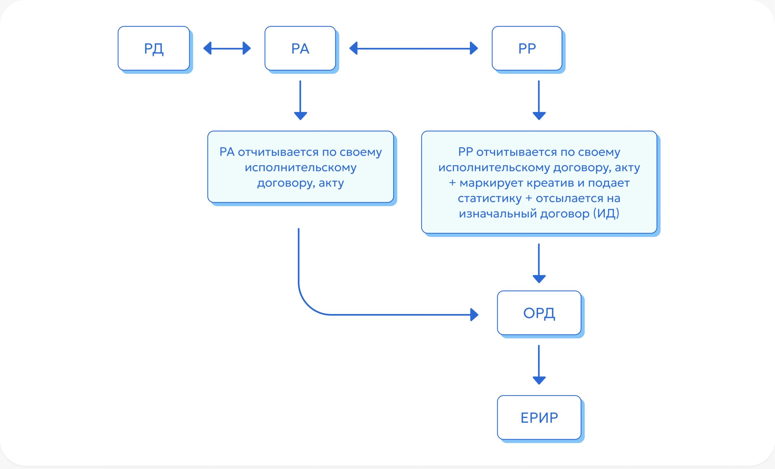 С 1 сентября 2022 года введена обязательная маркировка рекламы. Теперь перед размещением вся реклама в интернете должна быть промаркирована согласно нововведениям в Федеральном законе «О рекламе». Для этого были введены специальные участники – Единый реестр интернет-рекламы (ЕРИР) и операторы рекламных данных (ОРД), например, мы – «ОРД-А». Мы помогаем упростить маркировку и передачу данных в ЕРИР, агрегируя информацию от участников рынка и присваивая идентификаторы рекламным материалам. Напрямую направить сведения о рекламных кампаниях в реестр нельзя.