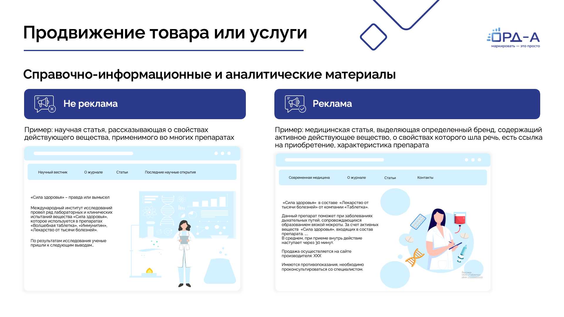 В любом случае, все кейсы рекомендуем прорабатывать в индивидуальном порядке с вашим юристом. Ведь универсального ответа на вопрос о том, какая информация точно (не) является рекламой, не существует. Все потому, что каждый случай необходимо рассматривать отдельно, учитывая содержание и визуальную составляющую того или иного материала, формат и обстоятельства его размещения.